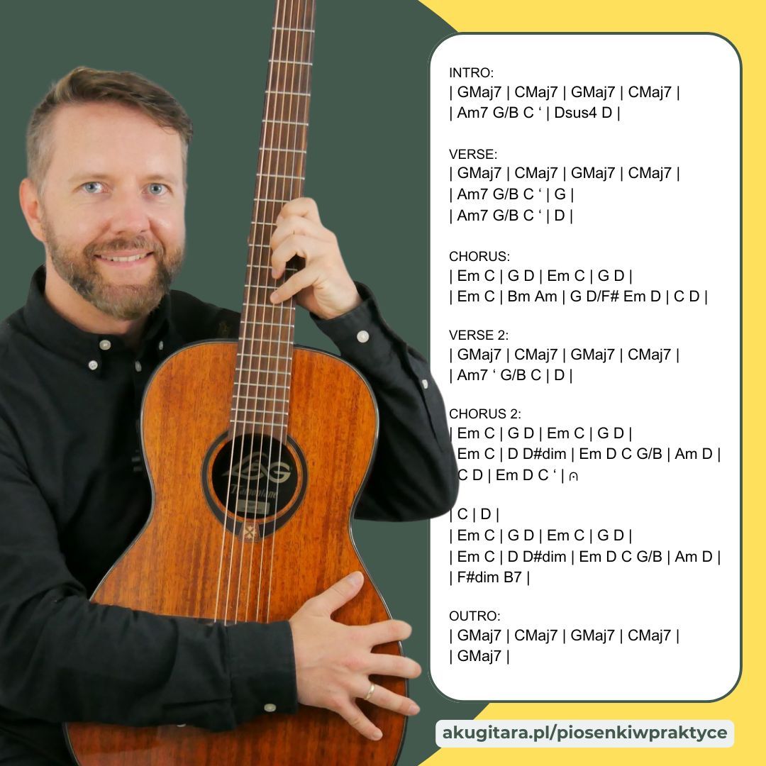 Rozpisz AKORDY do każdej z nich i umieść je w TAKTACH. Stosuj uniwersalny system amerykański, który obowiązuje muzyków rozrywkowych na całym świecie.